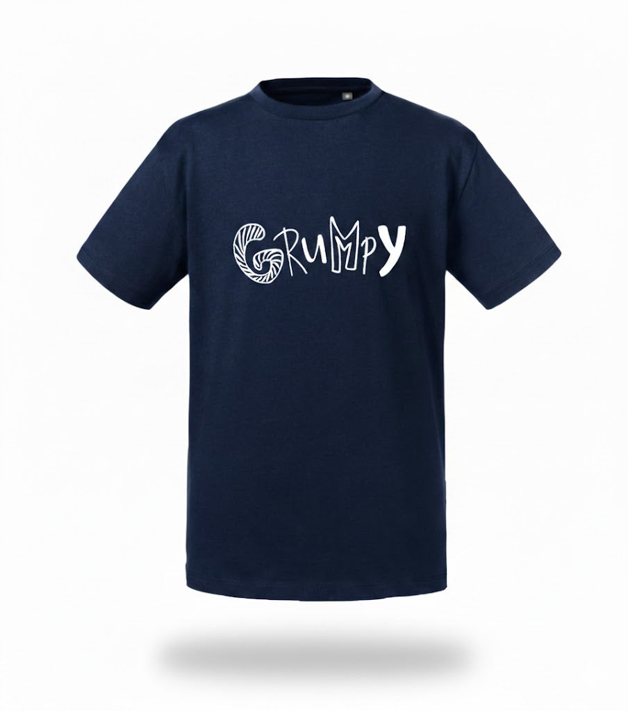 Navyblauw kids T‑shirt met wit Grumpy‑artwork voor een speelse, trendy uitstraling